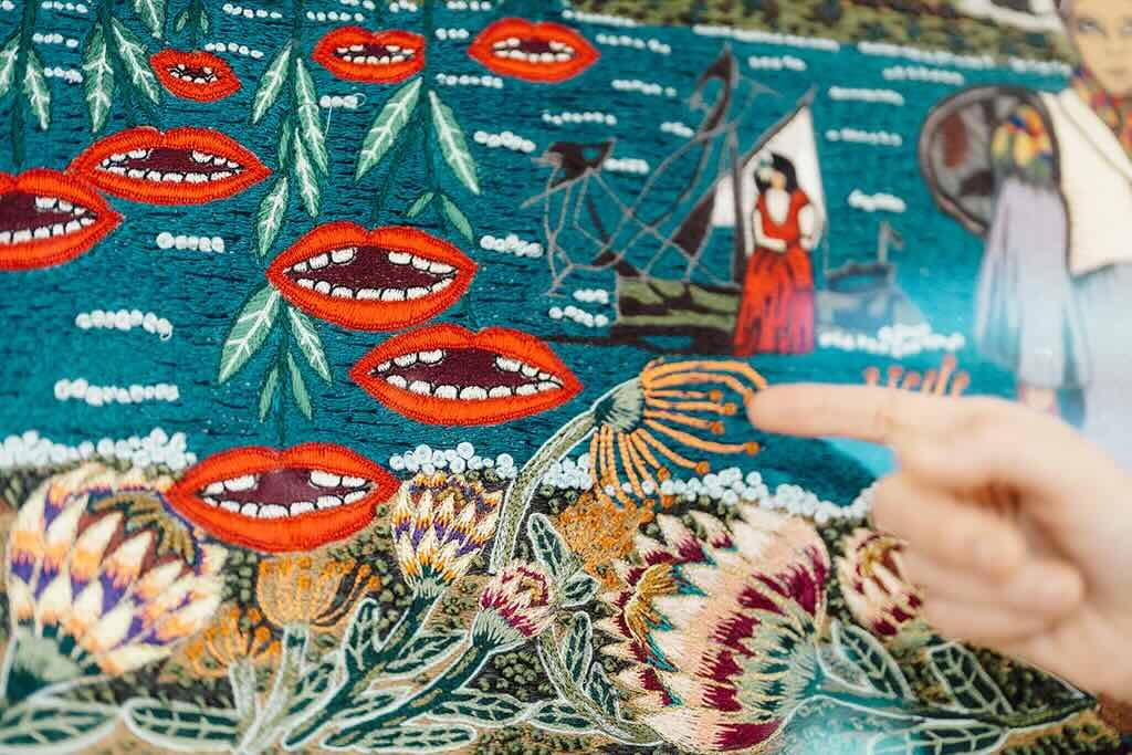 From the Eastern Cape, the Keiskamma Art Trust’s embroidered textiles capture local stories of resilience and cultural pride. Each stitch is a celebration of community heritage, blending historical narratives with vibrant contemporary expression while empowering local artisans.
