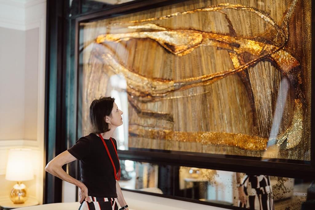 Created with ink on stripped metallic paper and recycled materials, Gluckman’s commissioned works explore the themes of renewal and the rhythm of nature. Inspired by African proverbs, her abstract designs interlace Celtic knot motifs, symbolising life’s continuous cycles and the deep connections that unite us.