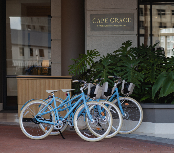 Discover Cape Town in a whole new way with Cape Grace’s exclusive RE:CYCLE bicycles by Vélosophy, crafted from recycled Nespresso capsules. This unique offering combines sustainability, design, and adventure, inviting guests to explore the city’s vibrant landscapes on two wheels. As the first hotel in South Africa to offer this innovative experience, Cape Grace invites guests to enjoy an eco-conscious way to discover the beauty of the Mother City. With names inspired by Cape Grace’s very own values – Honesty, Authenticity, Respect, Inclusivity, Integrity, Evolution, Purposeful and Grace – each of the eight (8) bicycles adds a touch of personality to your journey.
