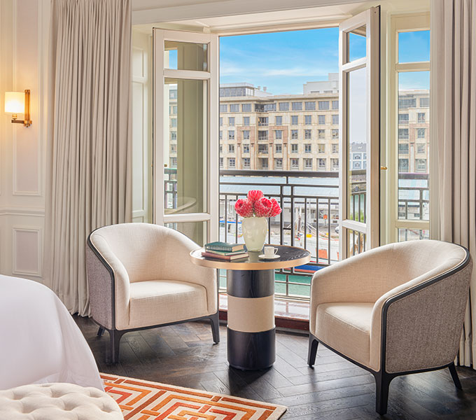 With views of the working harbour, these rooms offer elegant furnishing, and timeless contemporary décor complemented by luxurious linen. French doors, dressing area, and lavish en-suite marbled bathroom.